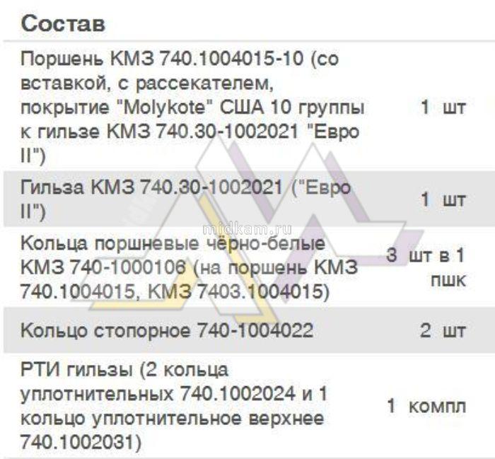 Купить Гильза+поршень+кольца+палец ( Дальнобой ) ( c рассекателем, с гильзой 740.30) / КМЗ 740-1000128 вы можете в компании МИДКАМ , оформив заказ в интернет магазине, отправив заявку по почте, а также по телефону или в офисе компании.